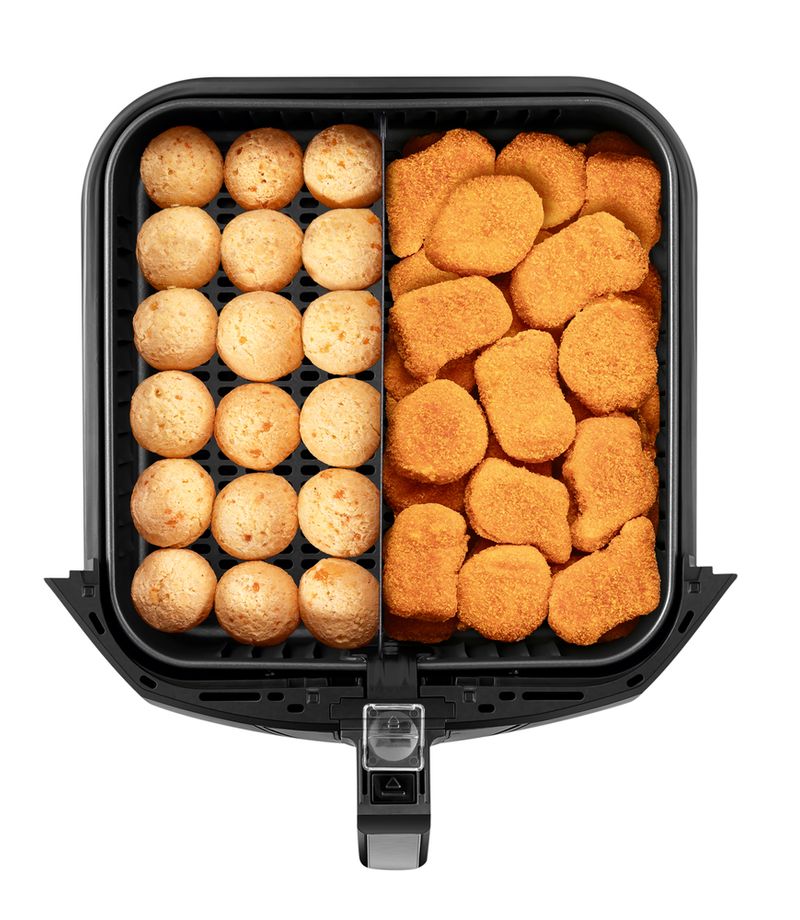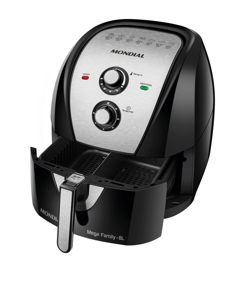 A Air Fryer Mondial Mega Family 8L oferece mais agilidade para o dia a dia. O cesto com divisória removível possibilita o preparo de duas receitas ao mesmo tempo, sem misturar os sabores. E para fazer grandes porções, basta retirar a divisória. Diversidade para preparar o que quiser, como quiser!