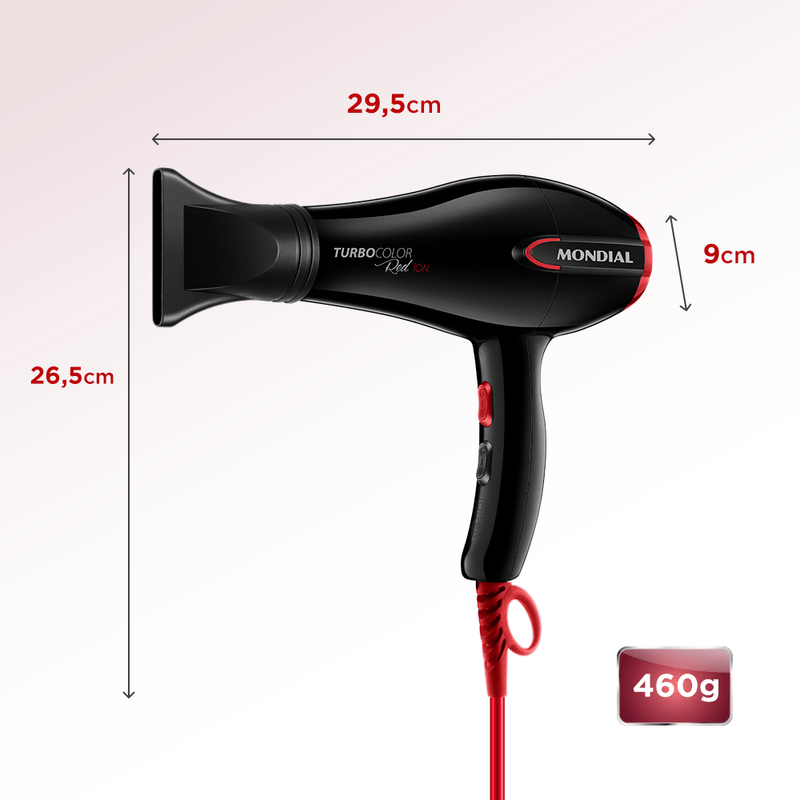 Secador com tecnologia que cuida da saúde dos seus fios! O Turbo Color Red tem revestimento com Tourmaline Íon, mineral que emite íons negativos, reduz o frizz e deixa seu cabelo macio e brilhante. Ainda possui 1.900W de potência para uma secagem super-rápida e eficiente. Saiba mais sobre o SC-41 da Mondial: