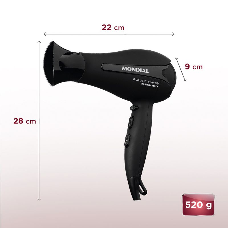 Resultado de salão em casa: seu cabelo mais bonito com o Power Shine Black Íon SC-13! O secador da Mondial tem 2.000W de potência, o que proporciona rapidez e eficiência na secagem. Além disso, a tecnologia Tourmaline Íon fecha as cutículas dos fios, deixando os cabelos mais sedosos, hidratados e com brilho. Saiba mais sobre o secador da Mondial: